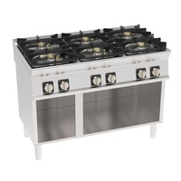 Kuchnia gastronomiczna gazowa super 6-palnikowa na podstawie z szafkę otwartą | TECNOINOX 713205
