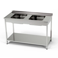 Stół nierdzewny ze zlewem 2-komorowym i szafką 100x60x85 cm | FORGAST