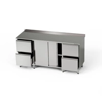 Stół roboczy nierdzewny z 2 szafkami i blokiem 2 szuflad 160x70x85 cm | FORGAST