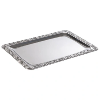 Taca SCHÖNER ESSEN, z ozdobnym rantem, ze stali nierdzewnej, 35x24x1.5 cm | APS 383