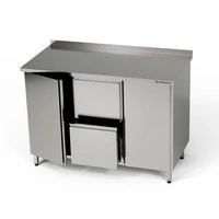 Stół roboczy nierdzewny z 2 szafkami i blokiem 2 szuflad 160x60x85 cm | FORGAST