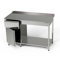 Stół roboczy nierdzewny z szafką, szufladą i 2-ma półkami 120x60x85 cm | FORGAST