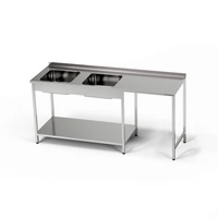 Stół nierdzewny ze zlewem 2-komorowym i miejscem na zmywarkę 220x70x85 cm | FORGAST
