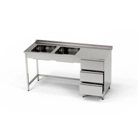 Stół nierdzewny ze zlewem 2-komorowym i blokiem 3-ch szuflad 160x70x85 cm | FORGAST