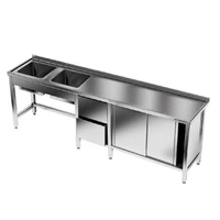Stół nierdzewny ze zlewem 2-komorowym 260x70x85 cm | FORGAST
