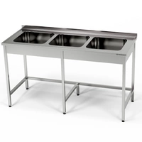 Stół nierdzewny ze zlewem 3-komorowym 190x60x85 cm | FORGAST
