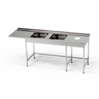 Stół nierdzewny ze zlewem 2-komorowym, miejscem na zmywarkę i otworem na odpadki 260x70x85 cm | FORGAST