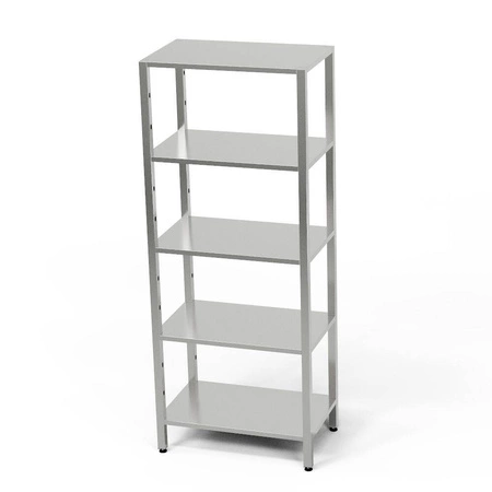 Regał nierdzewny 5-półkowy z przestawnymi półkami został zaprojektowany z myślą o profesjonalnych kuchniach, chłodniach, laboratoriach czy magazynach spożywczych. Dzięki możliwości regulacji wysokości półek, regał umożliwia wygodne przechowywanie zarówno dużych pojemników z żywnością, jak i drobnych narzędzi kuchennych lub środków czystości. Konstrukcja oparta na zamkniętych profilach stalowych zapewnia wyjątkową stabilność, nawet przy pełnym obciążeniu. W zestawie znajduje się kompletny regał z pięcioma półkami, z których trzy można dowolnie przestawiać, co pozwala na elastyczne dostosowanie do indywidualnych potrzeb.