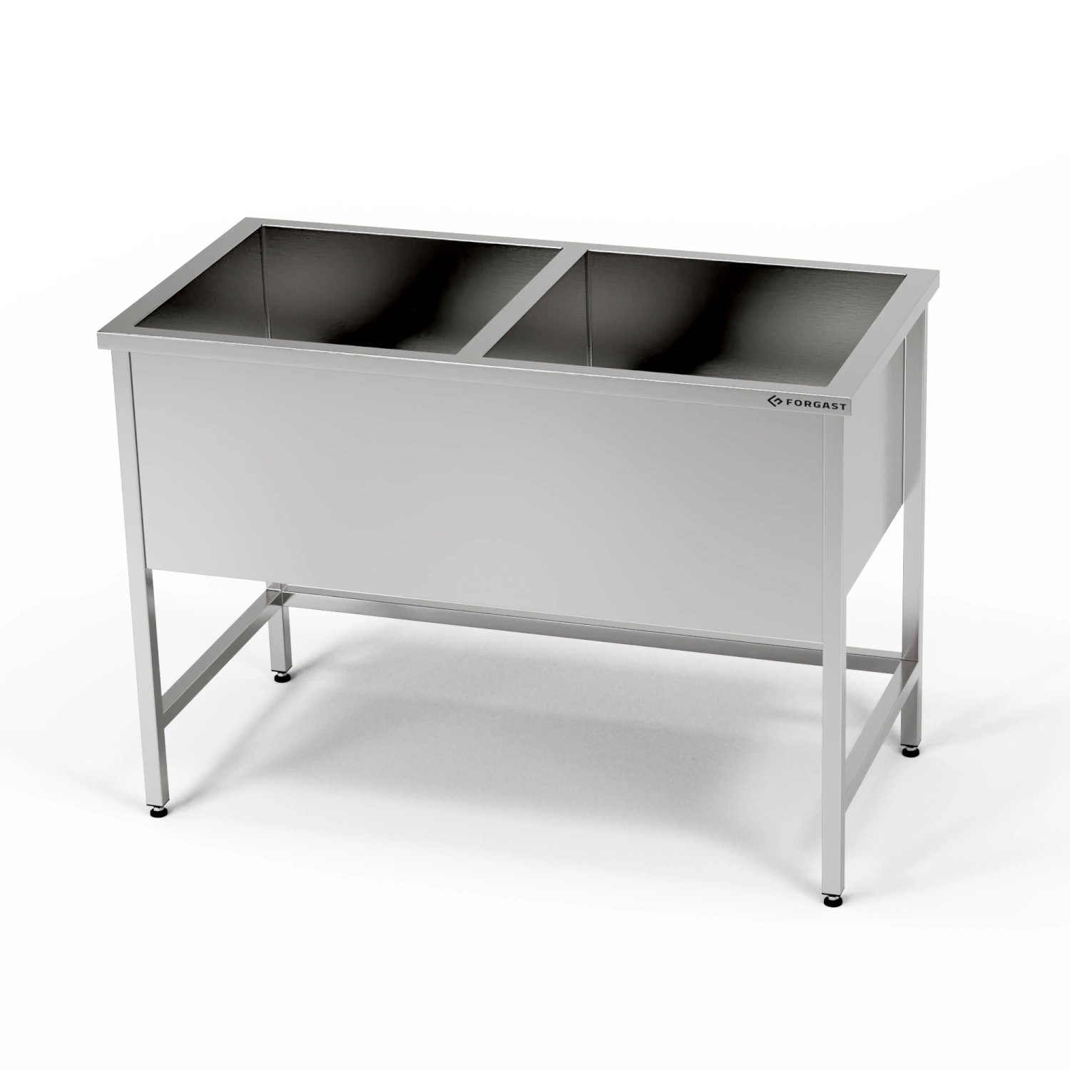 Basen nierdzewny 2-komorowy (gł. 30 cm) 170x70x85 cm FORGAST to profesjonalny zlew kuchenny wykonany z wysokogatunkowej stali nierdzewnej, przeznaczony do intensywnej eksploatacji w branży gastronomicznej i przemyśle spożywczym. Jego charakterystyczne cechy to dwie głębokie komory o pojemności 30 cm każda oraz solidna, stabilna konstrukcja. Idealnie sprawdzi się w restauracjach, stołówkach, firmach cateringowych i zakładach produkcyjnych, gdzie liczy się szybka i higieniczna obsługa dużej ilości naczyń oraz sprzętu kuchennego.