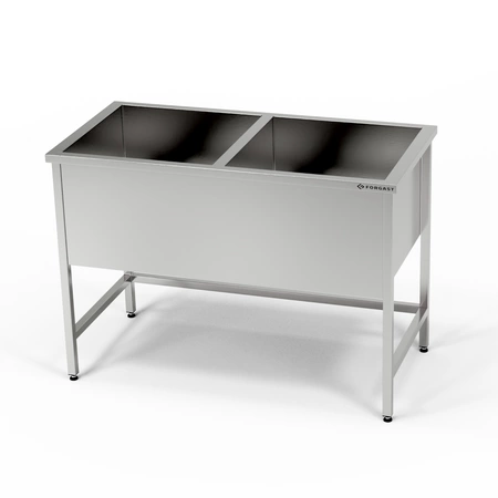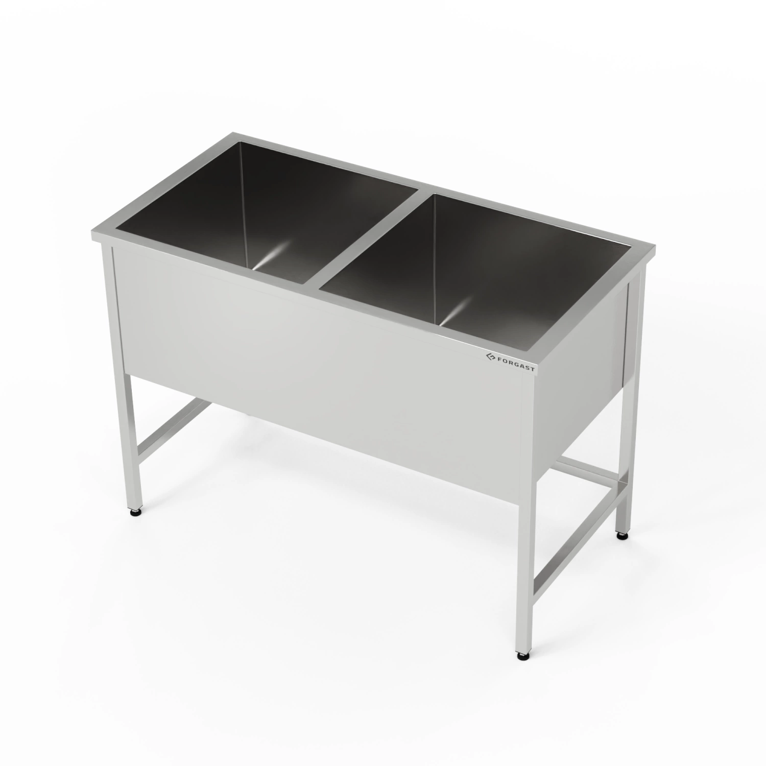 Basen nierdzewny 2-komorowy (gł. 40 cm) 160x70x85 cm FORGAST to profesjonalny zlew gastronomiczny przeznaczony do intensywnego użytkowania w kuchniach restauracyjnych, hotelowych i zakładach zbiorowego żywienia. Jego wyróżnikiem są dwie głębokie komory, konstrukcja ze stali nierdzewnej oraz ergonomiczna wysokość, które czynią go niezbędnym wyposażeniem dla każdej kuchni wymagającej efektywnego mycia dużych naczyń i pojemników GN.