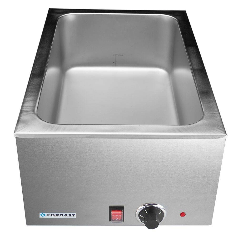 Bemar elektryczny stołowy Forgast FG09800 to funkcjonalne urządzenie gastronomiczne przeznaczone do skutecznego utrzymywania temperatury gorących potraw. Charakteryzuje się niewielkimi rozmiarami oraz wykonaniem ze stali nierdzewnej, dzięki czemu doskonale nadaje się do barów, stołówek, małych restauracji i punktów gastronomicznych z ograniczoną przestrzenią. Został zaprojektowany tak, aby można go było łatwo ustawić na stole lub blacie roboczym.