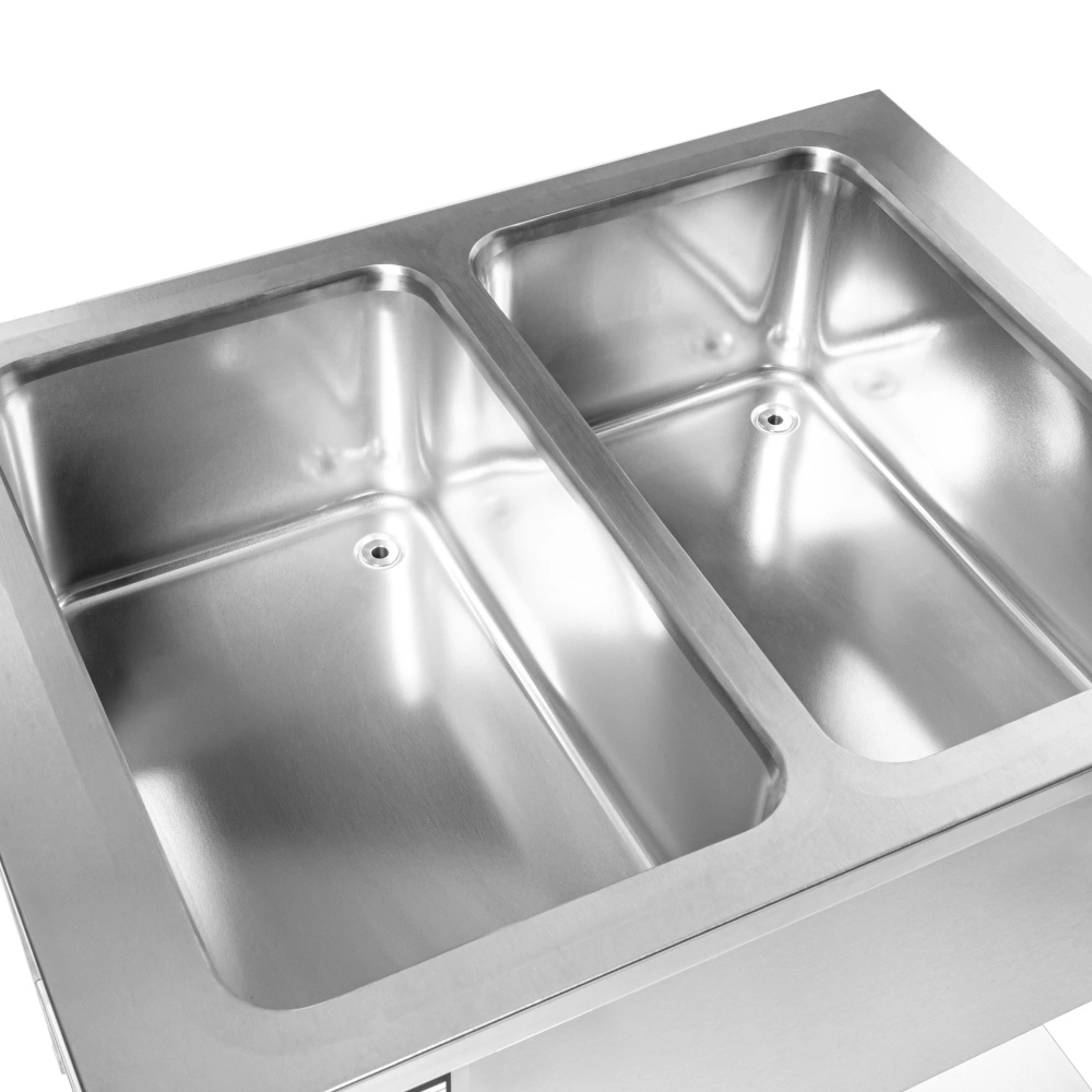 W zestawie znajduje się sam bemar elektryczny z dwiema niezależnymi komorami, zaworem spustowym oraz regulowanymi stopkami. Pojemniki GN nie są dołączone do zestawu i należy je zakupić osobno, co pozwala na indywidualne dostosowanie ich ilości i rozmiarów do specyfiki danego lokalu oraz rodzaju serwowanych potraw.