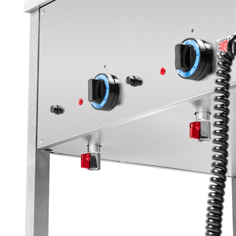 • Solidna konstrukcja ze stali nierdzewnej: Urządzenie wykonane jest z wysokiej jakości stali nierdzewnej, co zapewnia trwałość, łatwość utrzymania czystości oraz odporność na intensywne użytkowanie w profesjonalnej kuchni. Jest to szczególnie ważne w miejscach o dużym natężeniu pracy, gdzie niezawodność sprzętu ma kluczowe znaczenie.