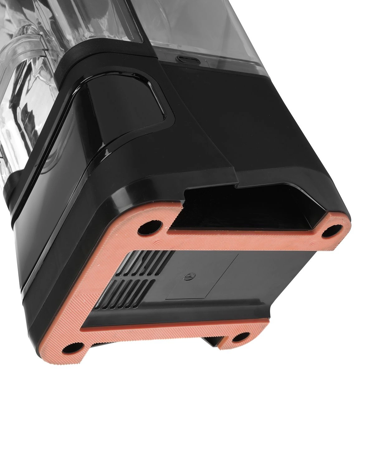 Obudowa wyciszająca wykonana z poliwęglanu. Urządzenie działa tylko wtedy, gdy pokrywa jest całkowicie zamknięta. W zestawie 2,5-litrowy, odporny na uderzenia dzbanek z poliwęglanu, z wytrzymałą pokrywką wykonaną z tworzywa PBT oraz małą miarką z poliwęglanu.
