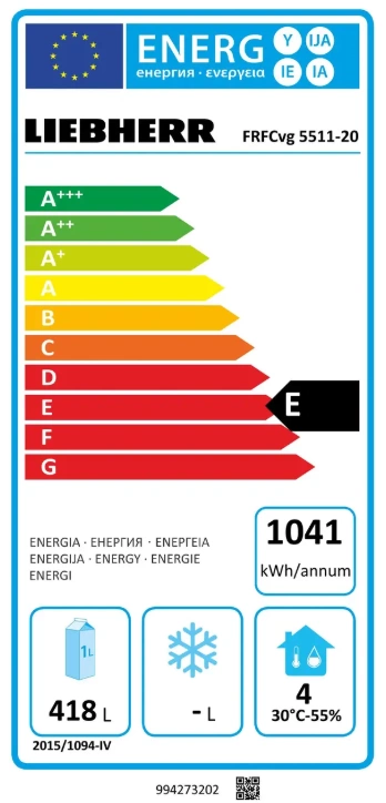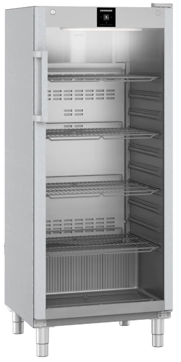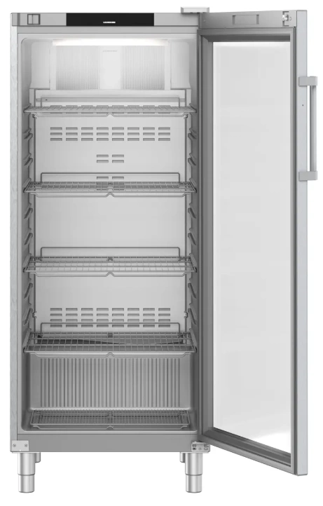Z pojemnością brutto 600 l i 418 l netto, Liebherr FRFCvg 5511 oferuje wystarczająco dużo miejsca do przechowywania różnorodnych produktów. Dzięki czterem regulowanym półkom o maksymalnym obciążeniu 60 kg każda, chłodziarka dostosowuje się do różnych wielkości pojemników, a wysokość nóżek (150 – 180 mm) zapewnia wygodny dostęp do wnętrza.