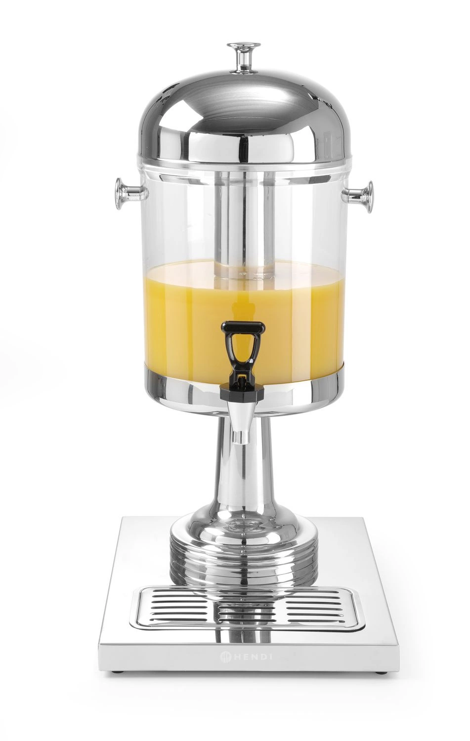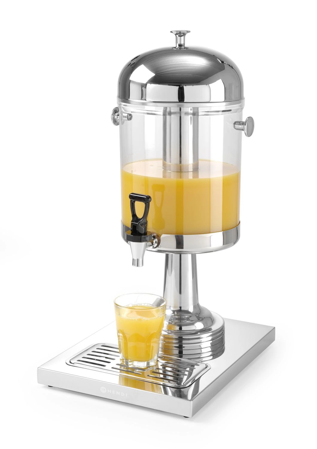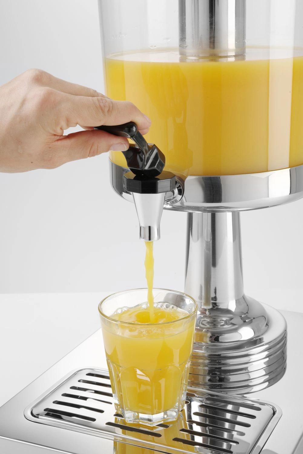 Dozownik do soków na podstawie i w obudowie wykonanej z wysoko polerowanej stali nierdzewnej. Zbiornik na sok z poliwęglanu o pojemności 8 l. Chłodzenie soku możliwe dzięki rurze wewnątrz dozownika, którą można wypełnić lodem. Niekapiący kranik. Zdejmowana kratka ociekowa ułatwia utrzymanie higieny dozownika.
