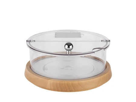 W skład produktu wchodzi przezroczysta miska wykonana z wytrzymałego tworzywa, lakierowana podstawa z drewna bukowego, praktyczny wkład chłodzący oraz uchylna pokrywa z miejscem na opis potrawy. Każdy z tych elementów został zaprojektowany z myślą o łatwości użytkowania i wygodzie zarówno dla serwujących, jak i gości.