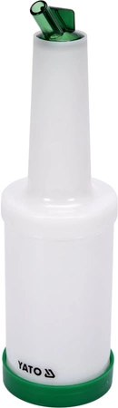 Dyspenser barmański 2-częściowy wykonany z polipropylenu. Przeznaczony do dozowania, mieszania i magazynowania napojów. Odporny na uszkodzenia, dzięki wysokiej jakości surowcom. Kolor zielony. Wbudowany odpowietrznik ułatwia dozowanie płynów. Odkręcany pojemnik, który można zamknąć dolną podstawą. W ten sposób możemy przechowywać przygotowane napoje.