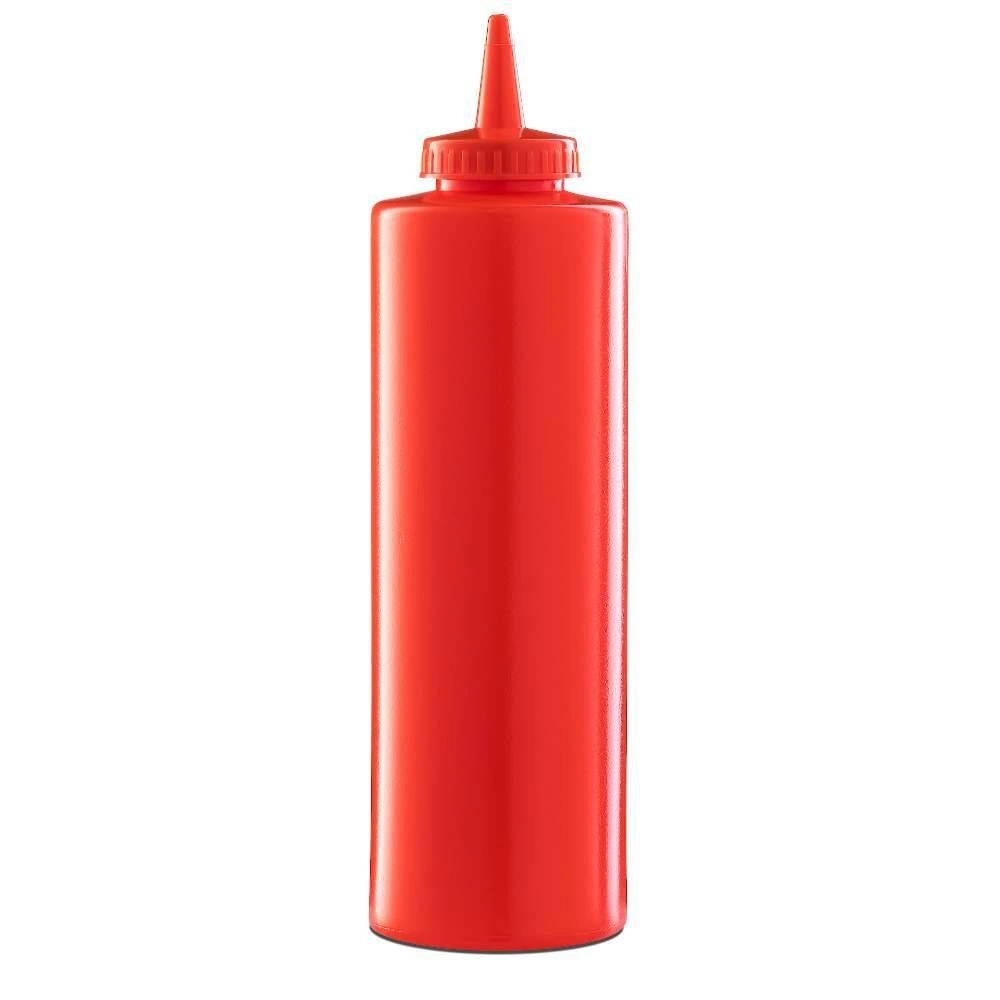 Budowa i zastosowanie dyspensera do sosów z polietylenu, czerwony