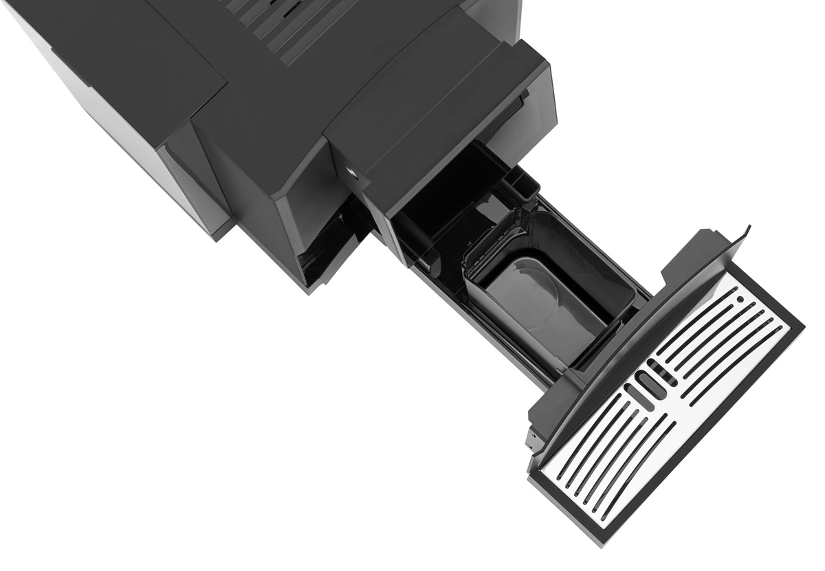 Ekspres charakteryzuje się wysoką wydajnością – do 80 filiżanek (120 ml) na godzinę, dzięki stożkowemu młynkowi ze stali i mocnej pompie o ciśnieniu 19 bar. Regulowany system spieniania mleka umożliwia przygotowanie zimnego lub ciepłego mleka o różnej temperaturze. Urządzenie jest łatwe w konserwacji dzięki automatycznym programom czyszczenia, sygnalizacji odkamieniania oraz wyjmowanym elementom dostosowanym do mycia w zmywarce.