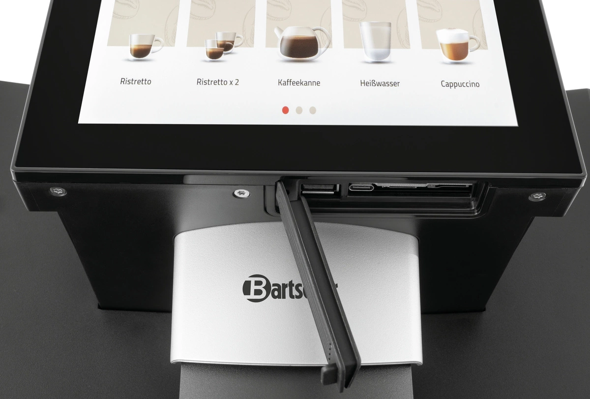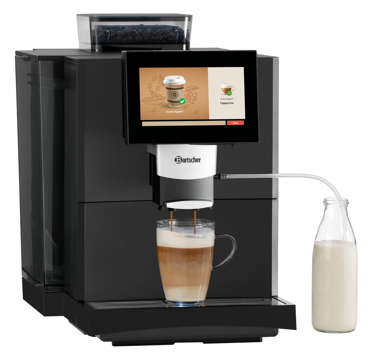 Profesjonalny, w pełni automatyczny ekspres do kawy Bartscher to idealne rozwiązanie dla kawiarni, biur czy jadalni, zapewniające szybkie i wygodne przygotowanie różnorodnych napojów kawowych – od espresso po latte macchiato. Urządzenie zostało wyposażone w intuicyjny dotykowy ekran z systemem Android, umożliwiający zapis własnych filmów instruktażowych lub promocyjnych, co czyni je atrakcyjnym wizualnie narzędziem marketingowym.