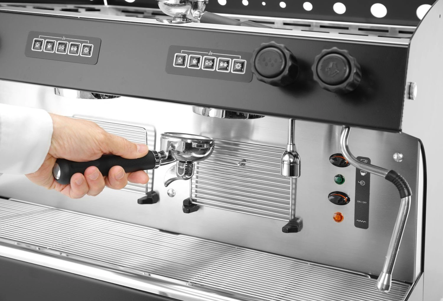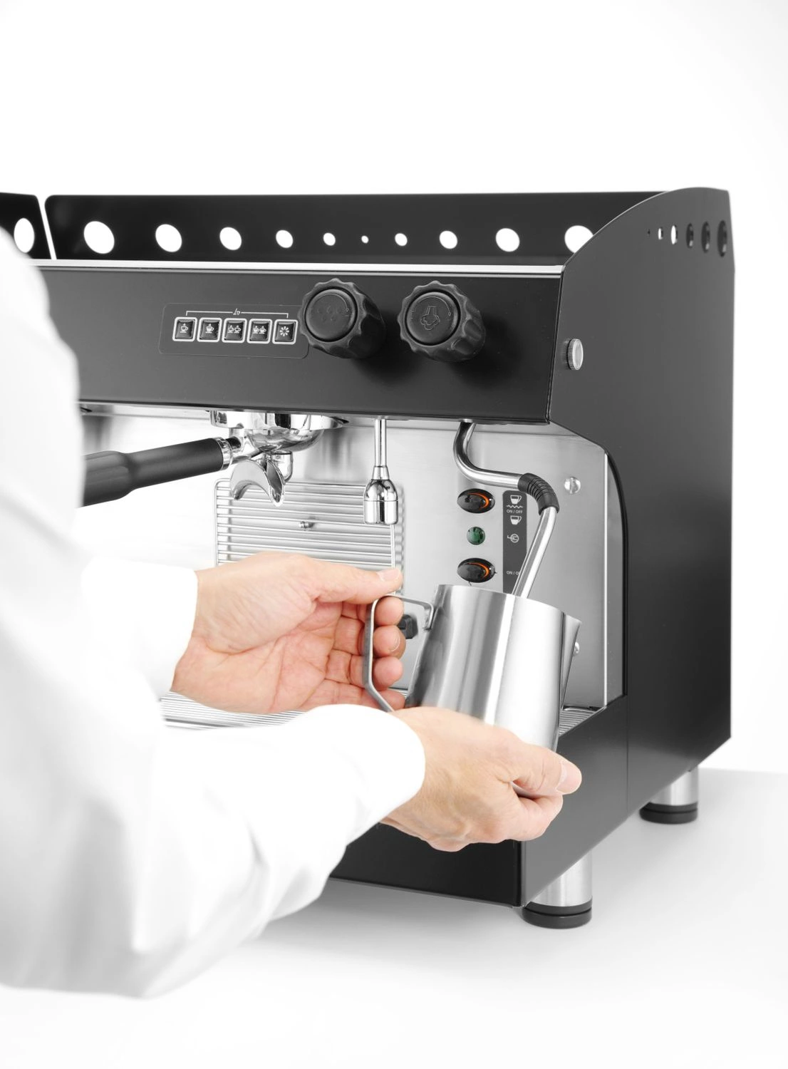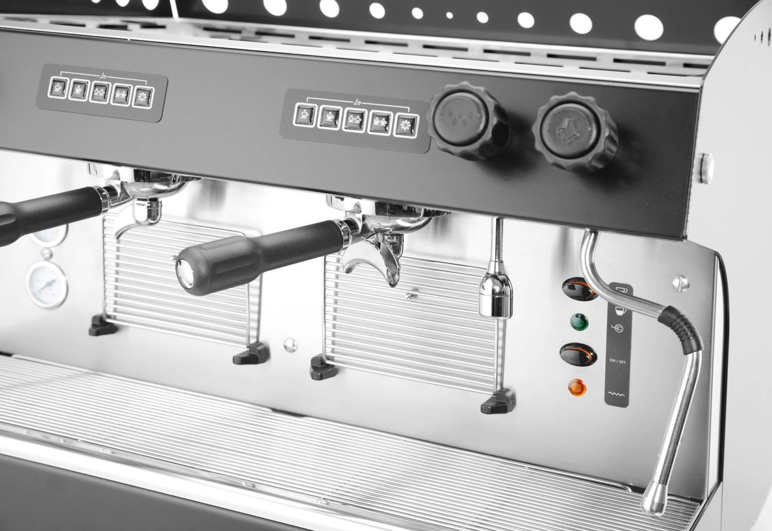 Ekspres do kawy JULIA, 2-grupowy, automatyczny marki Verona. W kolorze czarnym. Profesjonalne wykonanie ze stali nierdzewnej. Sterowanie automatyczne. Ekspres posiada osobne sterowanie dla każdej z dwóch grup za pomocą dedykowanego panelu sterowania. Polecany jest do kawiarni, restauracji i barów. W obudowie mieści się bojler o pojemności 11 litrów. Ekspres posiada funkcję automatycznego uzupełniania wody oraz automatycznego mycia grupy. Ręczne dozowanie kawy. Maksymalna wysokość filiżanki wynosi 14 cm. Ekspres posiada też dwie dysze pary wodnej oraz jedną dyszę do wrzątku. Nad panelem sterowania znajduje się praktyczna półka na filiżanki.