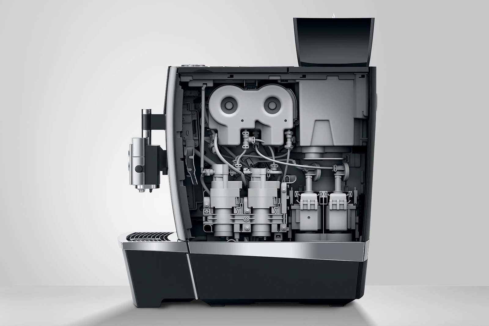 • Dwa systemy obiegu wody - umożliwiają  równoległe dostarczanie i kontrolowanie wody i pary, aby jeszcze szybciej przyrządzić ulubioną kawę.