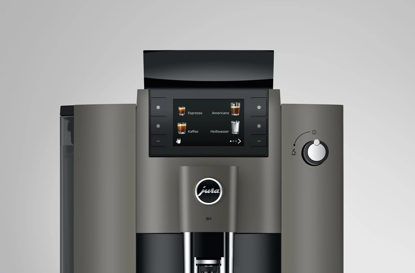 Ekspres JURA W4 to w pełni automatyczne, profesjonalne urządzenie zaprojektowane z myślą o środowiskach biznesowych, gdzie liczy się niezawodność, prostota obsługi i doskonały smak kawy. Dzięki kompaktowym wymiarom i wyrazistemu wzornictwu doskonale wpasowuje się w przestrzenie biurowe, pracownie, warsztaty czy lokale usługowe.