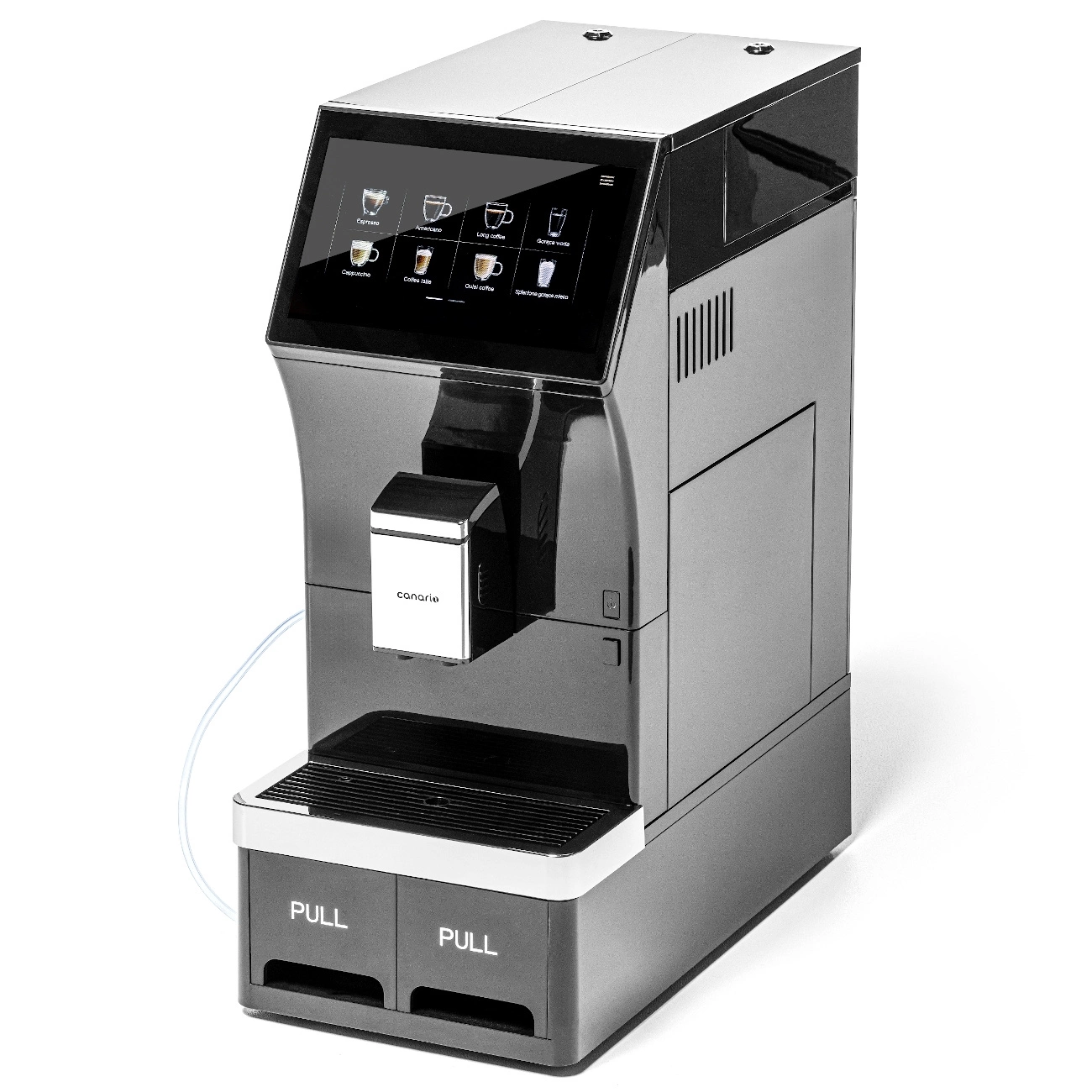 Ekspres do kawy Canario CC701 to zaawansowane, automatyczne urządzenie, które łączy nowoczesny design z funkcjonalnością, idealne do biur oraz małych lokali gastronomicznych. Dzięki swojej wszechstronności i intuicyjnej obsłudze, jest doskonałym rozwiązaniem dla osób ceniących wygodę użytkowania oraz doskonały smak kawy.