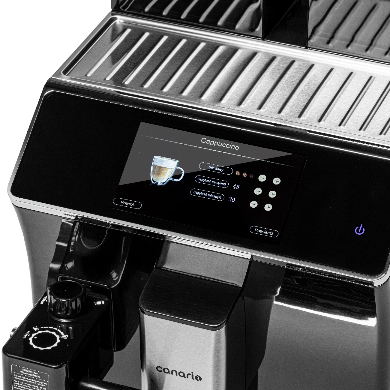 Dodatkowym atutem jest możliwość podłączenia tacy ociekowej do odpływu, co eliminuje potrzebę jej ręcznego opróżniania, znacznie ułatwiając codzienną eksploatację. Duży pojemnik na fusy umożliwia zaparzenie kilkudziesięciu filiżanek kawy przed koniecznością jego opróżnienia, co zwiększa wygodę i efektywność pracy.