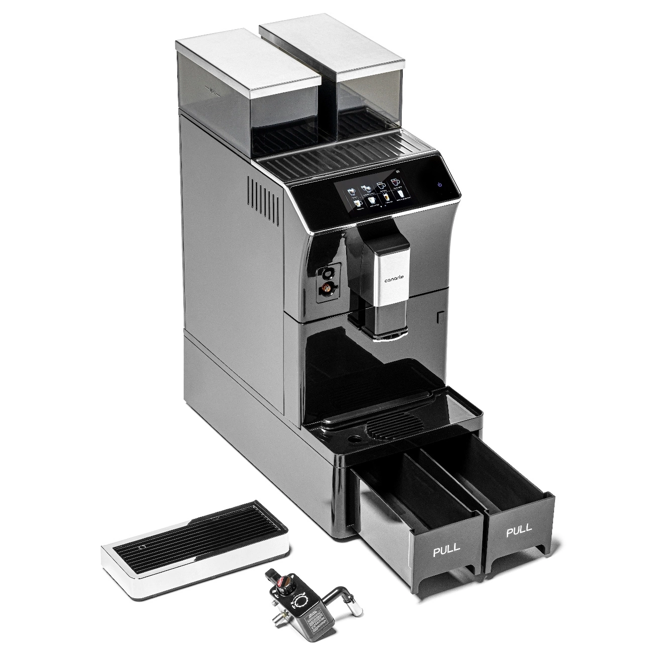 Ekspres sprawdzi się idealnie w biurach, kawiarniach i lokalach gastronomicznych. Duży pojemnik na kawę (1 kg), pojemny zbiornik na wodę (3,5 l) oraz możliwość podłączenia do zewnętrznego zbiornika z wodą gwarantują długotrwałe użytkowanie bez konieczności częstego uzupełniania ani dolewania wody ręcznie – to doskonałe rozwiązanie do miejsc o dużym natężeniu ruchu - eliminuje konieczność częstego dolewania wody, co jest szczególnie praktyczne w intensywnie użytkowanych miejscach, takich jak biura czy kawiarnie.