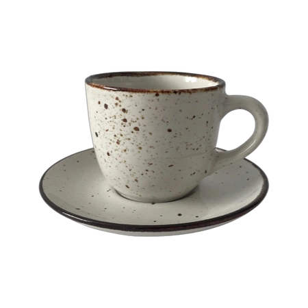 Ten wyjątkowy komplet składa się z filiżanki o pojemności 200 ml oraz pasującego spodka o średnicy 15 cm. Produkt wyróżnia się kremową barwą, ręcznym wykończeniem oraz rustykalnym charakterem. Doskonały zarówno do codziennego picia kawy czy herbaty, jak i do serwowania napojów gościom w restauracjach lub domowych wnętrzach o przytulnym klimacie.