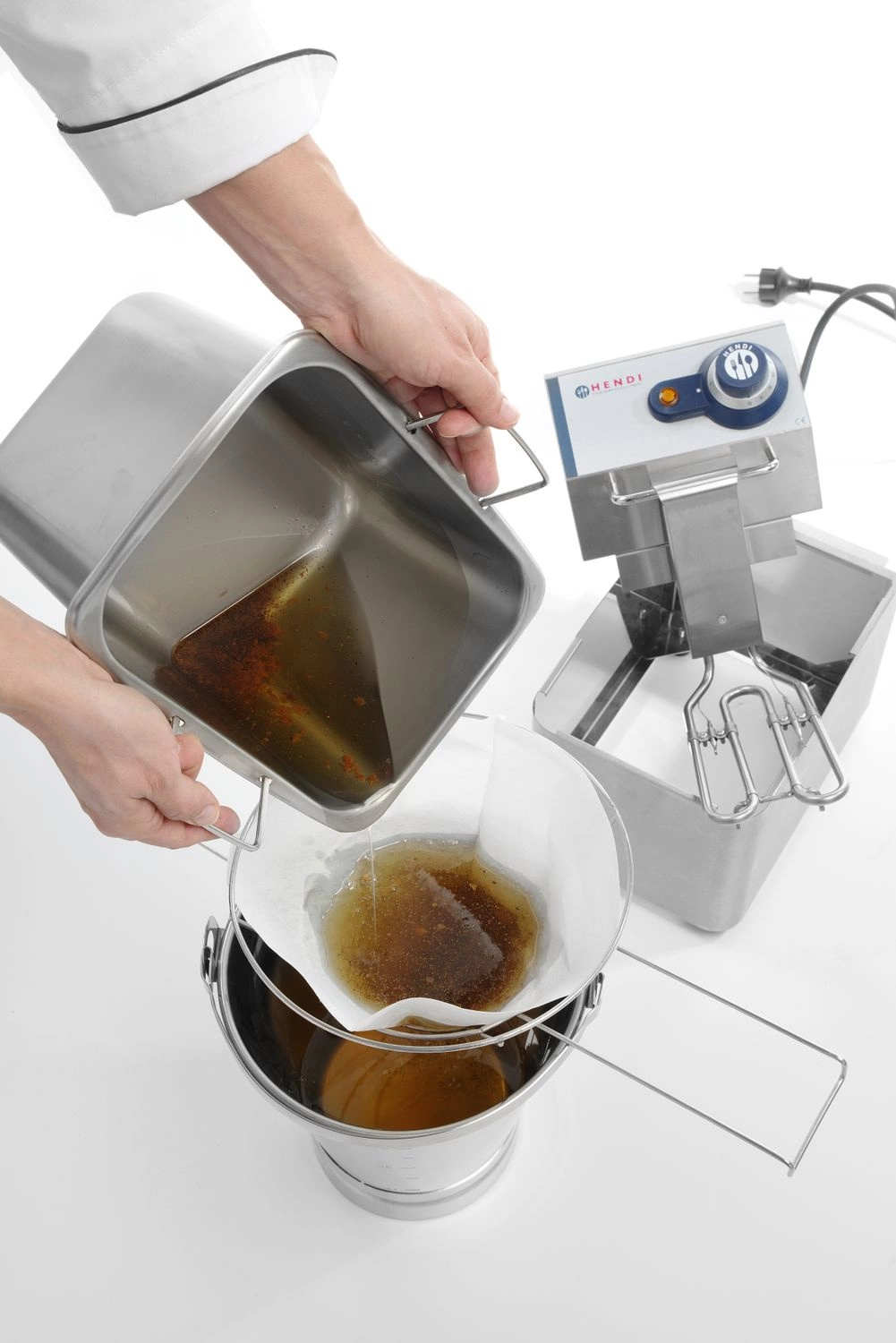 Filtry do frytownic Hendi. Wykonanie z syntetycznego jedwabiu gwarantuje wytrzymałość i odporność termiczną do 200°C. Filtry sprawnie przechwytują zanieczyszczenia, takie jak cząstki żywności. W efekcie filtrowania, możliwe jest ponowne wykorzystanie przefiltrowanego oleju do smażenia. Filtry posiadają deklarację wyrobu przeznaczonego do kontkatu z żywnością. W opakowaniu znajduje się 50 filtrów o wymiarach 25,4x25,4 cm.