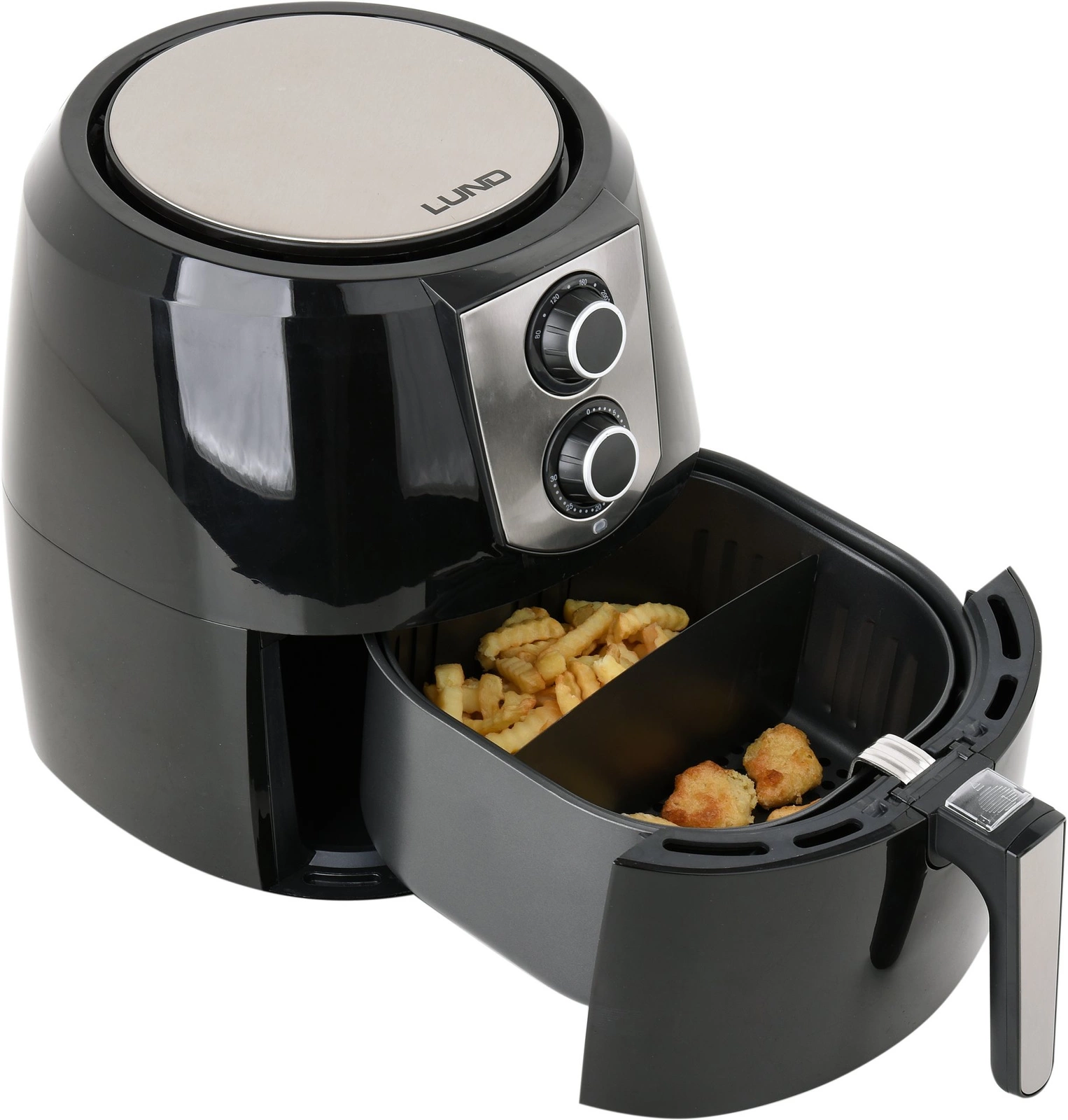 Frytownica beztłuszczowa 5,2 l LUND 67573 to innowacyjne urządzenie kuchenne przeznaczone do codziennego użytku domowego. Dzięki dużej pojemności oraz funkcji smażenia, grillowania i pieczenia, pozwala na szybkie i wygodne przygotowanie zdrowych potraw z minimalną ilością tłuszczu. Model ten świetnie sprawdzi się do przyrządzania frytek, warzyw, mięs, a także domowych wypieków.