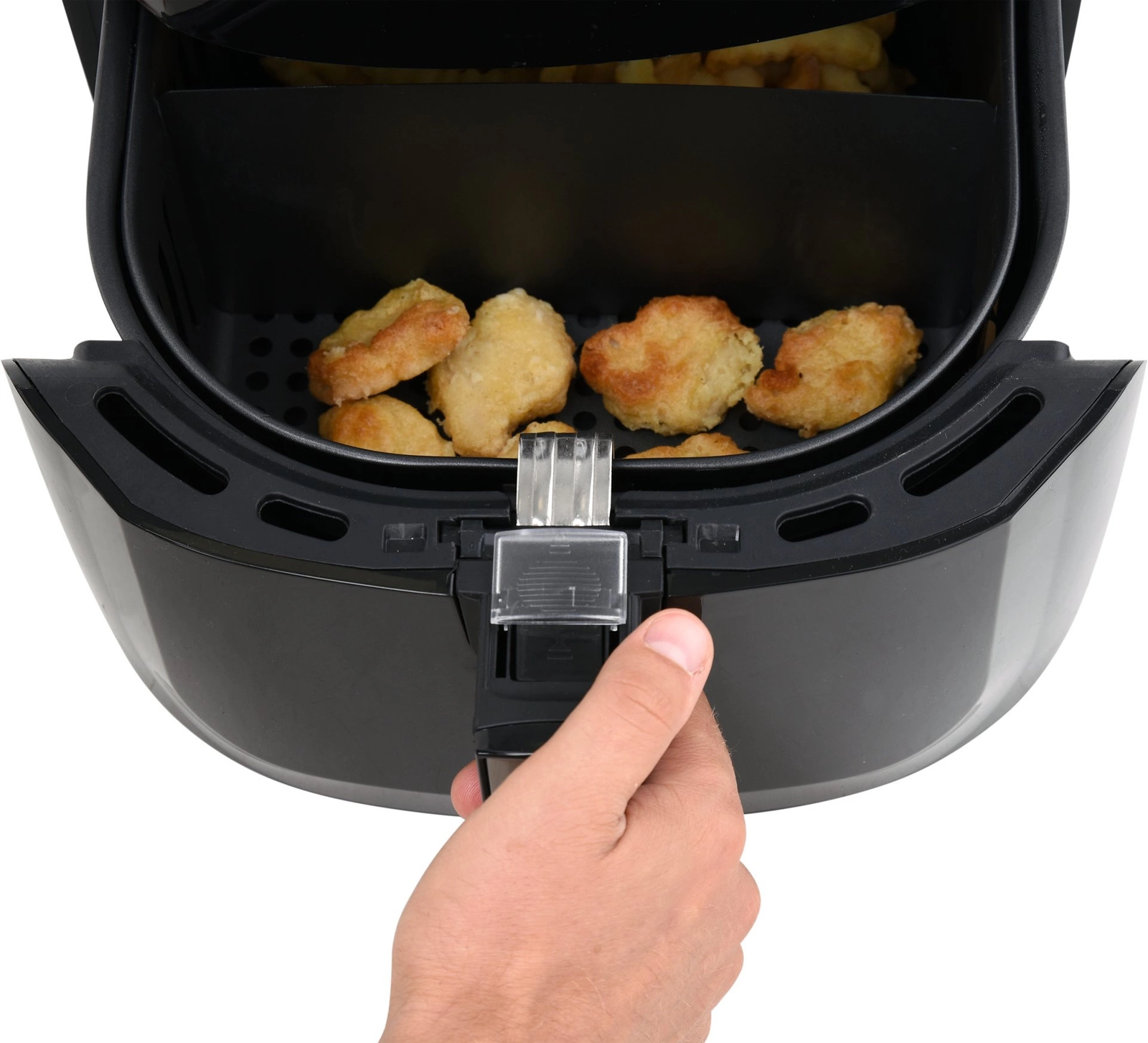 - Oszczędność tłuszczu – Przygotowywane potrawy zawierają nawet do 80% mniej tłuszczu niż w tradycyjnych frytownicach, co jest szczególnie ważne dla osób dbających o zdrową dietę lub dzieci.