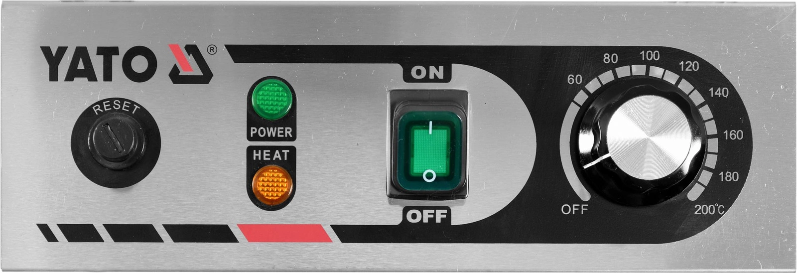 2 Grzałki o mocy 3.3 kW każda sterowane są za pomocą potencjometru umieszczonego na panelu sterującym. Możliwe jest ustawienie temperatury pracy w zakresie 60~200℃. Zainstalowany bryzgoszczelny wyłącznik pozwala na wyłączenie urządzenia, bez konieczności odłączania kabla zasilającego z sieci. Dodatkowo panel sterujący posiada osłonę zabezpieczającą wykonaną z bardzo wytrzymałego poliwęglanu, która chroni panel przed zachlapaniem olejem podczas smażenia. Dzięki temu utrzymanie frytownicy w czystości jest znacznie ułatwione. Wyjmowana grzałka ma możliwość powieszenia jej na specjalnym uchwycie w pozycji, w której ściekający olej trafia z powrotem do zbiornika. Frytownica posiada dodatkowe zabezpieczenie, które automatycznie wyłącza grzałkę w momencie wyciągnięcia jej ze zbiornika. Dodatkowe zabezpieczenie chroni ją przed przegrzaniem, przy temperaturze powyżej 260℃.