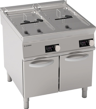 Frytownica wyposażona jest w elektroniczne sterowanie umożliwiające precyzyjne ustawienie temperatury w zakresie 140–190°C. Urządzenie pozwala na zapisanie programów smażenia, co ułatwia przygotowywanie powtarzalnych i standaryzowanych potraw. Specjalny program topnienia umożliwia bezpieczne rozpuszczanie tłuszczów stałych, takich jak masło, smalec czy olej, bez ryzyka przypalenia.