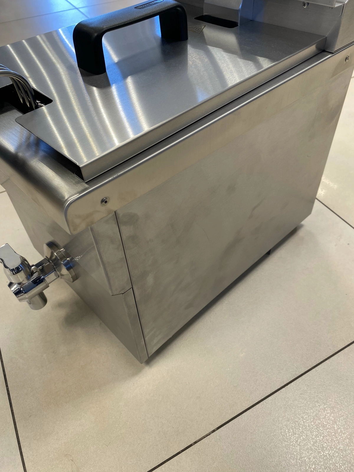 Frytownica indukcyjna z linii Kitchen Line o pojemności 8 l. Dzięki technologii indukcji utrzymywana jest dokładna zadana temperatura oleju. Obudowa wykonana ze stali nierdzewnej, ułatwia mycie urządzenia. Urządzenie posiada zabezpieczenie przed przegrzaniem. Timer. Panel sterujący z wyświetlaczem pokazuje zadaną temperaturę oleju.