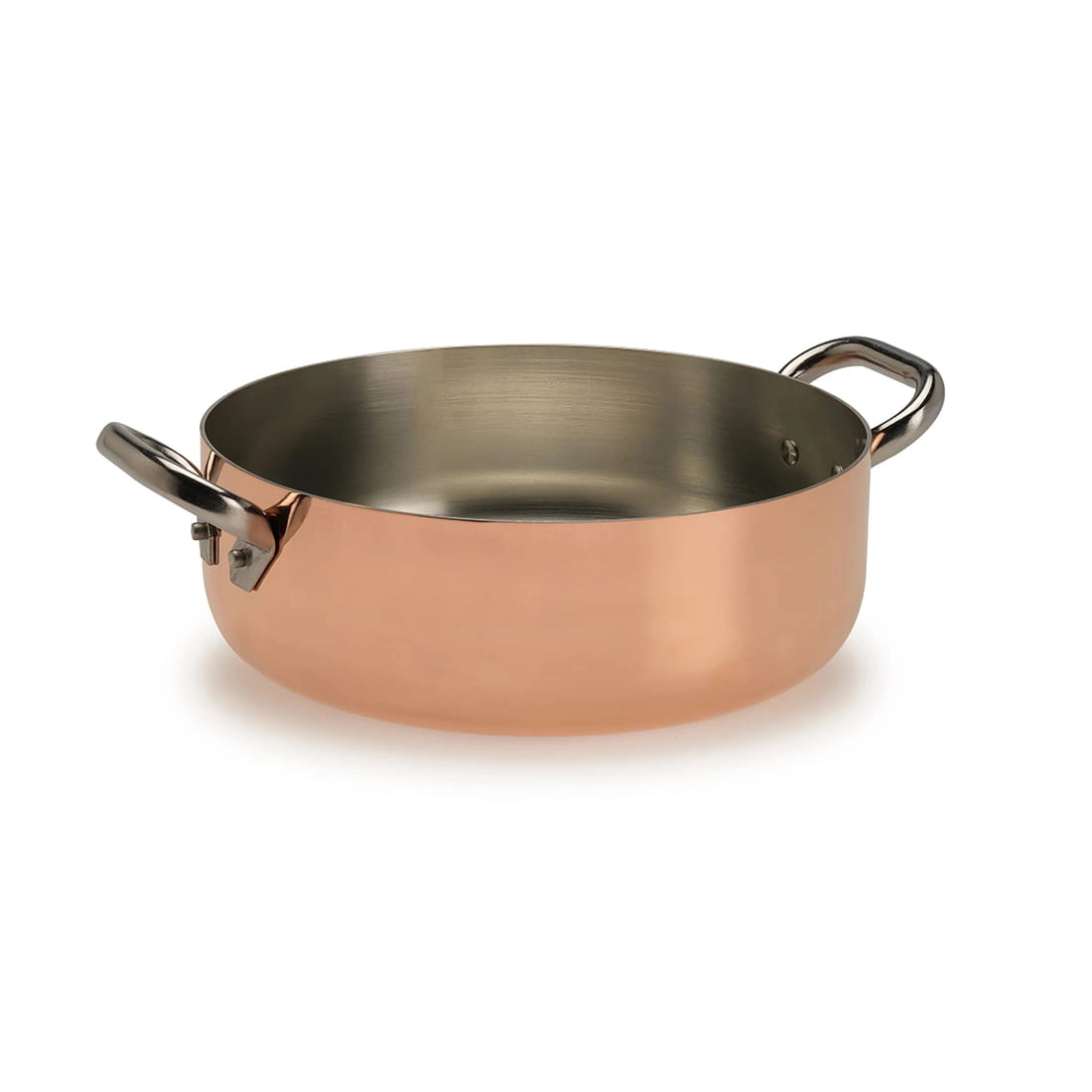 Garnek Tinned Copper doskonale nadaje się do przygotowywania wszelkiego rodzaju potraw wymagających precyzyjnej kontroli temperatury, takich jak risotto, sosy, zupy czy dania jednogarnkowe. Konstrukcja z miedzi umożliwia szybkie i równomierne nagrzewanie, a powłoka cynowa zapobiega przywieraniu i chroni potrawy przed kontaktem z metalem. Dwa ergonomiczne uchwyty ze stali nierdzewnej wolnej od niklu ułatwiają przenoszenie nawet pełnego garnka i nie nagrzewają się podczas gotowania.