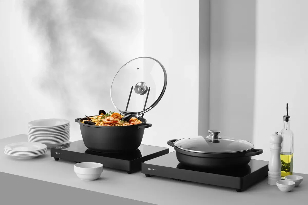 Garnek z powłoką nieprzywierającą HENDI łączy w sobie funkcjonalność, trwałość i uniwersalność, co czyni go doskonałym wyborem zarówno do kuchni profesjonalnej, jak i domowej. Dzięki solidnej konstrukcji, łatwości czyszczenia oraz możliwości zastosowania na różnych źródłach ciepła, garnek ten pozwala na przygotowywanie różnorodnych potraw w wygodny i bezpieczny sposób. Nowoczesny design i duża pojemność sprawiają, że to rozwiązanie na lata, które z pewnością sprosta oczekiwaniom nawet najbardziej wymagających kucharzy.