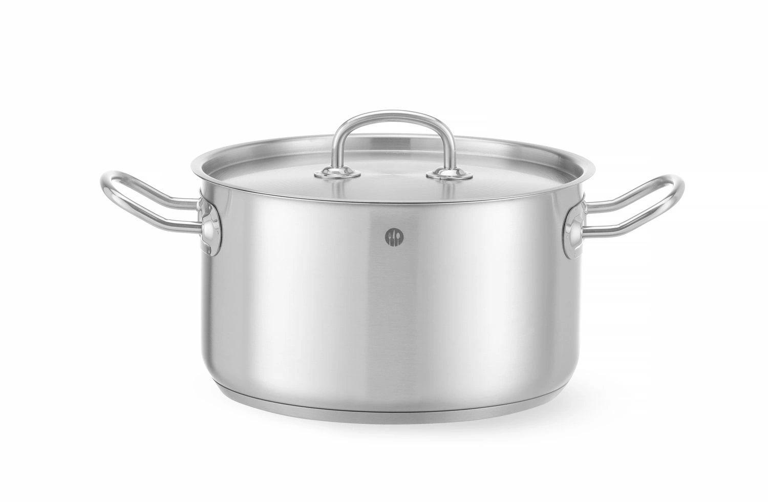 Profesjonalny garnek średni KITCHEN LINE przeznaczony do użytkowania w gastronomii. Garnek wykonany ze stali nierdzewnej satynowanej.. Masywne, wielopunktowo przytwierdzane uchwyty garnka nie nagrzewają się i zapewniają maksymalne bezpieczeństwo użytkowania. Kapsułowe, wielowarstwowe, grube dno typu sandwich (stal-aluminium-stal) gwarantuje równomierne rozprowadzanie ciepła, przez co skraca czas gotowania. Dno garnka jest łączone z korpusem pod wpływem wysokiego ciśnienia i wysokiej temperatury to właśnie sprawia, że dno nie odkształca się, nie pęka i idealnie rozprowadza ciepło. Technologia impact bonding zapewnia idealne łączenie się warstw i gwarantuje odporność na korozję i optymalne przewodzenie ciepła. Specjalne mocowanie dna umożliwia lepszy transfer ciepła.