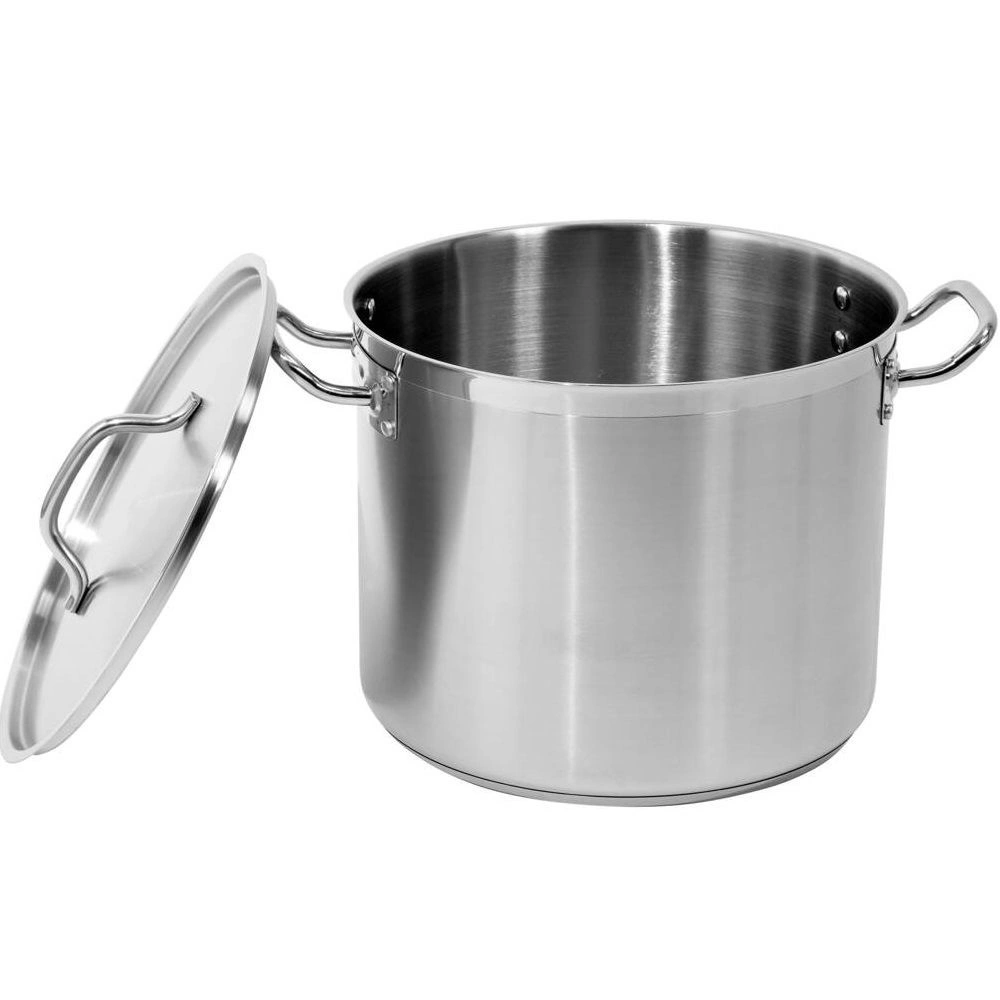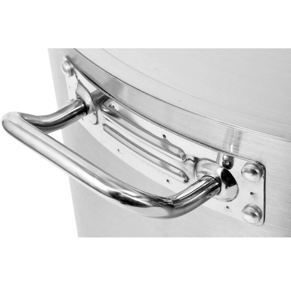 Garnek wysoki z pokrywką o pojemności 20,9 l. Wykonany z wysokiej jakości stali nierdzewnej 201, został zaprojektowany z myślą o intensywnym użytkowaniu w środowisku gastronomicznym. Wnętrze garnka posiada trójwarstwowe, kapsułowe dno o grubości 4 mm, wykonane z aluminium, które gwarantuje doskonałą przewodność cieplną. Warstwa zewnętrzna dna zabezpieczona stalą nierdzewną 430 dodatkowo podnosi jego trwałość. Grubość ścianki wynosząca 1 mm gwarantuje nie tylko trwałość, ale również równomierne rozprowadzanie ciepła, co wpływa korzystnie na jakość gotowanych potraw.