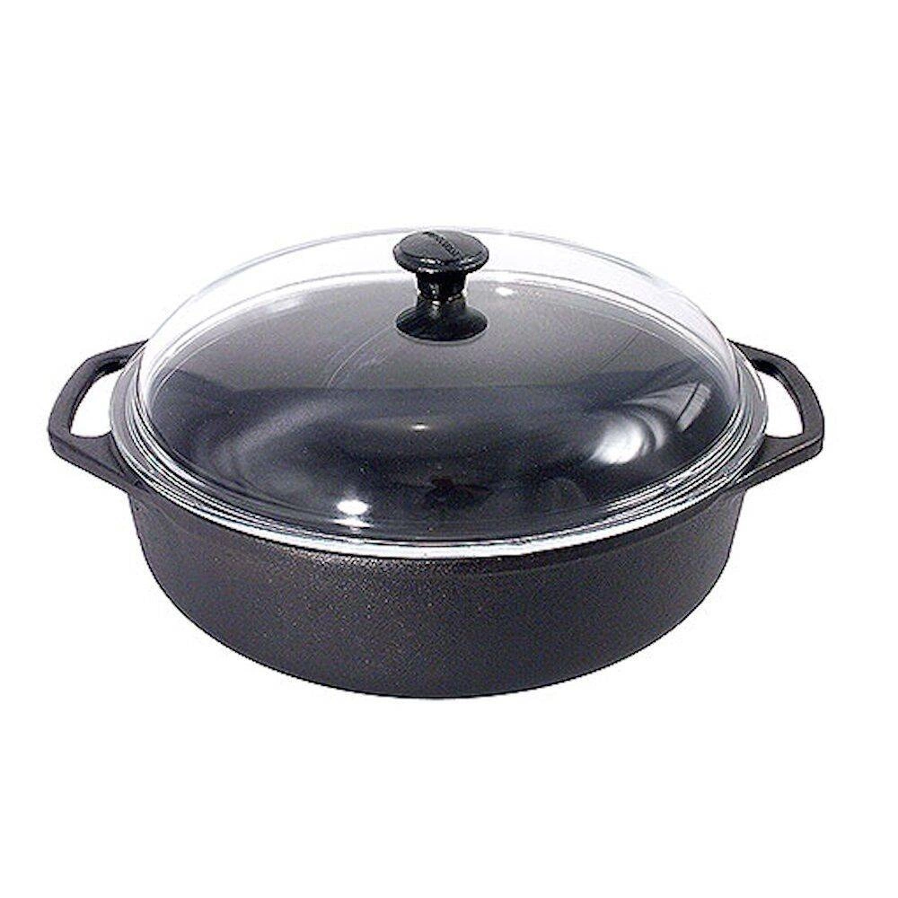 - Żeliwna konstrukcja: Materiał gwarantuje równomierne rozprowadzanie i długotrwałe utrzymywanie ciepła, co wpływa na lepszy smak potraw.