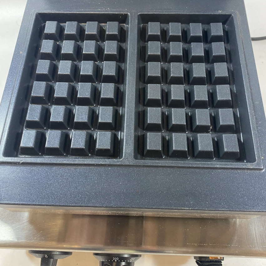 - Wymiary gofra: 10x16,2 cm – umożliwia wypiek dużych, prostokątnych gofrów typu Liege, które świetnie prezentują się w ofercie gastronomicznej.