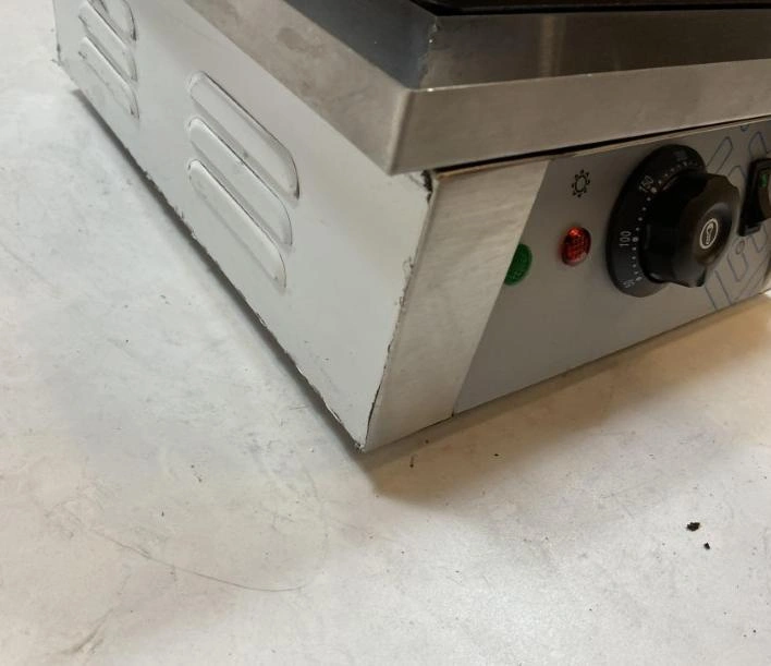 • Wyprofilowana rynienka na resztki ciasta – praktyczne rozwiązanie, które ułatwia utrzymanie czystości wokół płyty grzewczej, minimalizując ilość odpadów i skracając czas potrzebny na sprzątanie po zakończonej pracy.