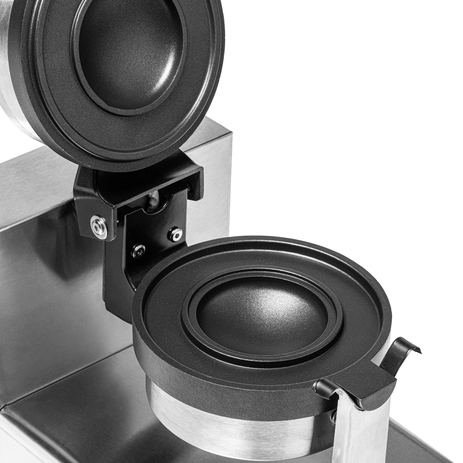 - Obrotowa płyta grzewcza – pozwala na równomierne rozprowadzenie ciasta, co przekłada się na perfekcyjnie wypieczone gofry o jednolitej strukturze. Funkcja ta szczególnie doceniana jest w punktach gastronomicznych, gdzie liczy się powtarzalna jakość produktu.
