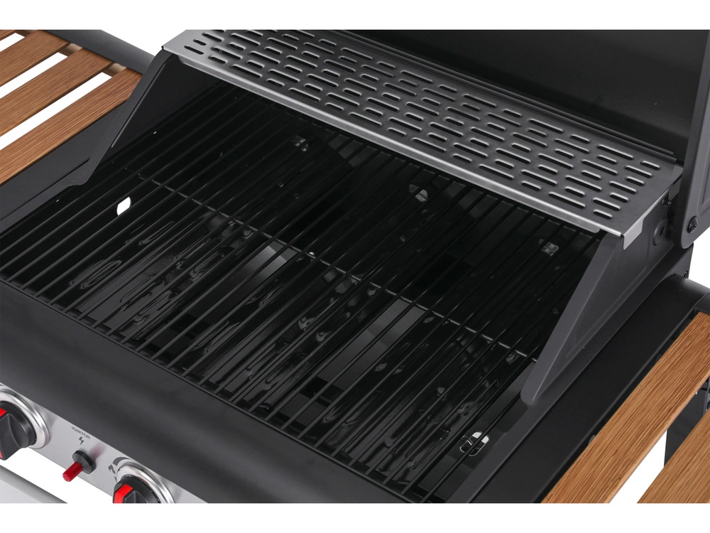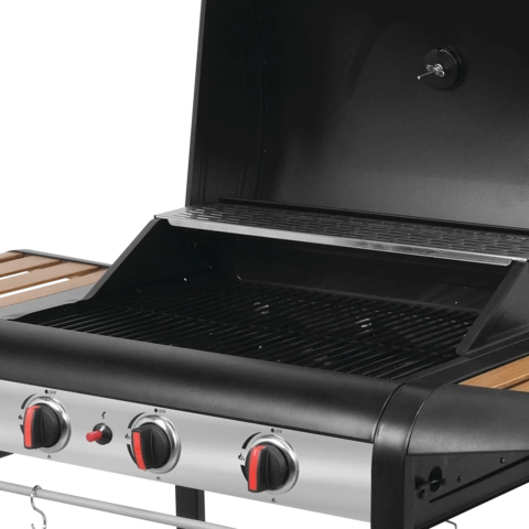 Grill gazowy YATO Natori to praktyczne i stylowe urządzenie do grillowania na świeżym powietrzu. Wyposażony w trzy palniki o łącznej mocy 9 kW, zapewnia równomierne, strefowe grillowanie na emaliowanym ruszcie o powierzchni 60 x 42 cm. Dzięki pokrywie z termometrem, wygodnym półkom bocznym z imitacją drewna oraz uchwytowi na 5 wieszaków, grillowanie staje się łatwe i komfortowe.