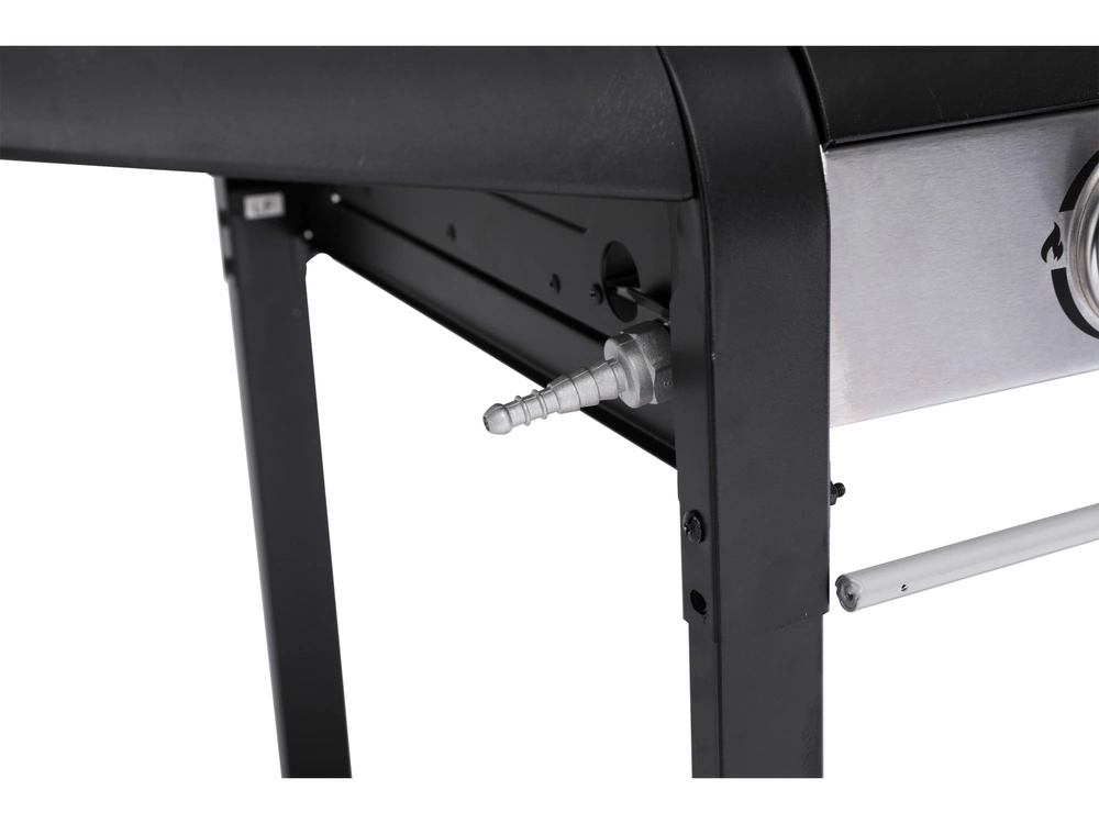 Produkt dostarczany bez węża i reduktora gazowego. Grill wymaga prostego montażu.