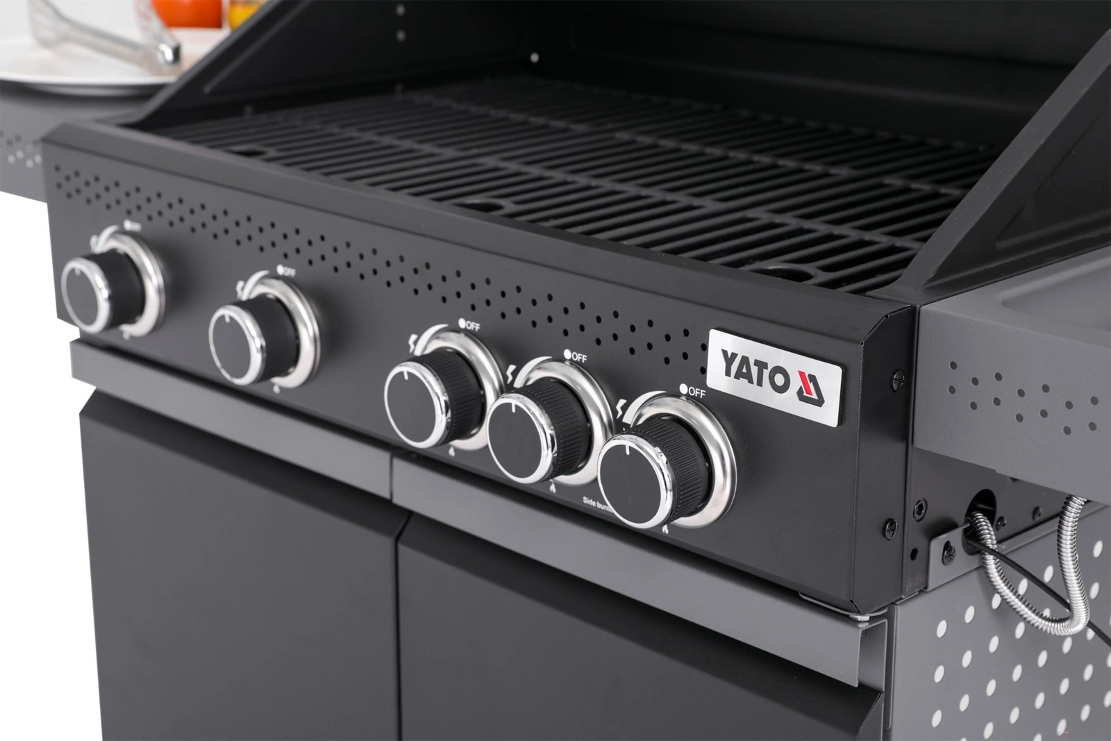 Grill gazowy YATO Okaya 4+1 to elegancki i solidny sprzęt, który pozwala na wygodne i profesjonalne grillowanie. Dzięki dużej mocy, wielofunkcyjności oraz wysokiej jakości wykonania będzie niezastąpionym elementem wyposażenia każdego ogrodu, tarasu czy restauracji.