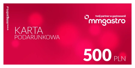 Karta Podarunkowa 500 PLN to wygodny i uniwersalny sposób na prezent, który daje pełną swobodę wyboru produktów z oferty sklepu internetowego mmgastro.pl. Karta wydawana jest w formie elektronicznej.